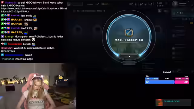 07:59:53Der Stream startet mit einer lockeren, oft gelassenen Grundstimmung. Es werden persönliche Gewohnheiten wie die Zubereitung von Magerquark mit Pulver und Schoko und das Essen einer Goldkiwi thematisiert. Bei den League of Legends-Spielen wird ein Ziel erwähnt: mindestens den Rang Emerald zu erreichen, bevor eine Reise nach Korea ansteht, um nicht verspottet zu werden. Ein wiederkehrendes Problem sind Streamsniper, die im Gegnerteam sind und als extrem nervig empfunden werden, da sie das Spiel erschweren. Auch Teamcompis werden oft als eklig oder unangenehm beschrieben.