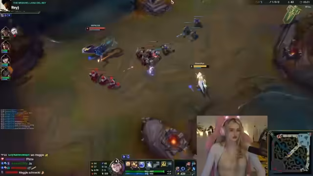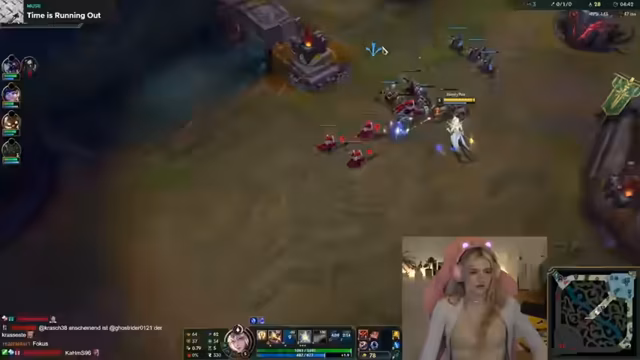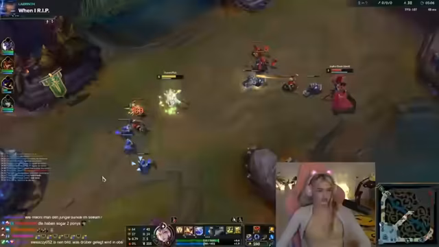 08:00:19DieStreamerin spielt League of Legends und berichtet über ein schwieriges Spiel mit einem schwachen Team, insbesondere in der Top-Lane. Sie versucht, trotz schlechter Stats und wenig Gold durch Farming und gezielte Kills ins Spiel zurückzukommen, was aber nur teilweise gelingt. Sie kauft Items wie Rabaddon und Shadowflame, um mehr Schaden zu verursachen.
