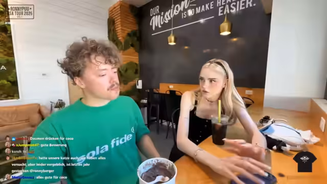 00:41:36Isa spricht über ihre Skoliose, eine Wirbelsäulenverkrümmung, die sie Ronny und Henke bereits gezeigt hat. Sie beschreibt, wie ihre Wirbelsäule verdreht ist, ähnlich einer Wendeltreppe. Sie hat in der Vergangenheit ein Korsett getragen und leidet unter Nackenschmerzen. Obwohl sie es im Stream zeigt, kommt die Schwere der Verkrümmung in der Kamera nicht vollständig zur Geltung. Isa erzählt auch von einem Shopping-Erlebnis, bei dem sie eigentlich nur eine Creme für einen Mückenstich kaufen wollte, aber mit vielen Hello Kitty-Produkten und anderen Dingen zurückkam. Dies führt zu einer humorvollen Diskussion über ihre Shopping-Sucht und die Schwierigkeiten, die Ronny dabei hat, auf sie zu warten. Sie erwähnt, dass eine Kartenlegerin ihr geraten hatte, weniger Geld auszugeben, was sie nun zu beherzigen versucht, auch wenn sie noch neue AirPods benötigt.