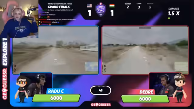06:12:34Hauptaugenmerk ist das Finale der Geoguessr World Championship zwischen den Spielern Radu und Debra. Die Kommentatorin ist voller Hochspannung und kommentiert fast jede Sekunde. Radu wird für seine außergewöhnlichen Fähigkeiten und Genauigkeit bewundert, während Debra als emotionaler "Rage"-Spieler beschrieben wird. Die Kommentatorin nimmt Partei für Radu und äußert sich frustriert, als eine Vermutung nicht zutrifft. Das Spiel wird als unglaublich spannend und intensiv bezeichnet.