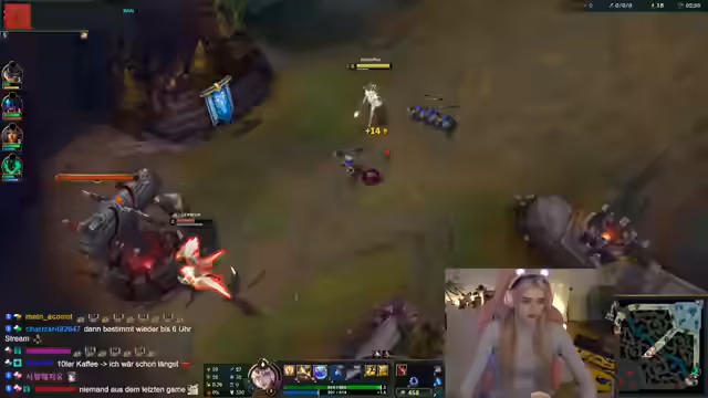11:14:16Die Streamerin erwähnt ihre bevorstehende Reise nach Korea im April und diskutiert die aktuelle Teamzusammensetzung im Spiel, einschließlich eines ungewöhnlichen Varus auf der Top-Lane. Sie äußert Bedenken hinsichtlich der Spielweise des Teams und der Fähigkeiten des Gegners, insbesondere einer stark spielenden LeBlanc. Die Streamerin reflektiert über vergangene Erfahrungen bei Craftig und freut sich auf zukünftige Bauprojekte. Sie analysiert Teamzusammensetzungen und diskutiert Strategien gegen bestimmte Champions wie Shaco und Malzahar, wobei sie die Bedeutung von Teamkoordination und dem Schutz des ADCs hervorhebt. Sie spricht über die Schwierigkeit, gegen bestimmte Ultimates zu spielen und Strategien, diese zu kontern. Die Streamerin spricht über die Bedeutung von Spielverständnis und wie sie versucht, dieses zu verbessern, um in Korea Vorteile zu haben. Sie diskutiert die Vor- und Nachteile von Teleport als Zauber und wie sie ihre Championauswahl an die Bedürfnisse des Teams anpasst, wobei Lux eine zentrale Rolle spielt. Sie beschreibt ihre aktive Phase im Spiel und reflektiert humorvoll über mentale Zerfallszustände und die Auswirkungen von Schlaftabletten auf ihr Gameplay. Die Streamerin reflektiert über vergangene Craftig-Erlebnisse und freut sich auf zukünftige Bauprojekte.