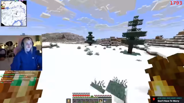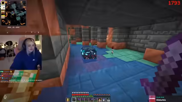 02:38:34Die Streamerin erkundet eine Trial Chamber, nachdem sie einen vollen Inventar mit Bottles of Enchanting und Diamantrüstung bemerkt hat. Ihr Ziel ist es, einen Skeleton Kopf mit Fire Protection 4 zu finden. Der Chat gibt dabei Hinweise, was sie vermutlich benötigt. Sie muss sich orientieren und stellt fest, dass die Kiste voll ist, was die Navigation erschwert. Einige gefundene Gegenstände, wie Wolle, werden direkt im Chat bewertet und es kommt zu einem kurzen Plauder über Upgrades.