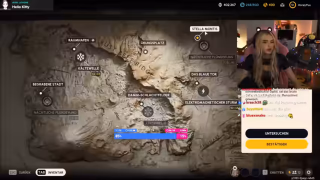 06:27:04Während eines Spiels verliert der Streamer eine wertvolle Ausrüstung, den 'Bobcat', was ihn frustriert. Immer wieder tauchen Gegner auf, zu denen er eine angespannte Beziehung hat. Nach einem失误 kehrt er zum Spawn-Punkt zurück, was im Chat für Aufsehen sorgt. Er beschreibt eine Chaotische Situation und versucht, sich zu orientieren, während er gleichzeitig auf seinen Teamkameraten achten muss.