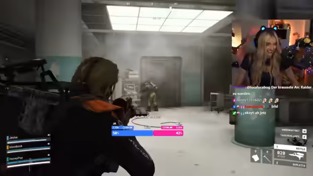 12:40:19Der Stream ist von harten Kämpfen und unerwarteten Wendungen geprägt. Es werden zahlreiche Gegner eliminiert und die Taktiken wechseln ständig. Besonders der Proximity-Chat wird als ein Spiel-Verstärker angesehen, der die Atmosphäre deutlich verbessert und zu unerwarteten Interaktionen führt, wie dem plötzlichen Aufkommen von Gegnerstimmen in der Lobby. Die Kommunikation im Team scheint jedoch zu stocken und die Lage bleibt unübersichtlich.