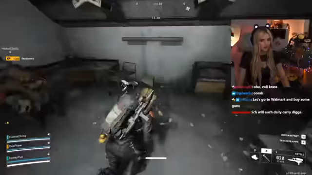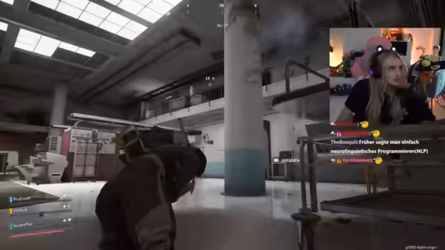 13:53:18Zu Beginn des Streamsabschnitts gibt es Diskussionen über Gaslighting im Spiel, gefolgt von einem Kampf, bei dem der Streamer von Abzugskranaten getötet wird, ohne seine Waffe ziehen zu können. Er erfährt, dass man nach dem Rollen den Waffenknopf erneut spammen muss, um die Waffe auszurüsten. Dies führt zu einem kurzen, technischen Unterbrechung, bevor der Streamer sich wieder auf das Spiel konzentriert.