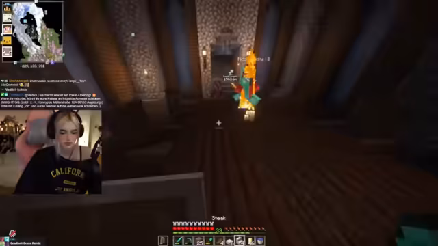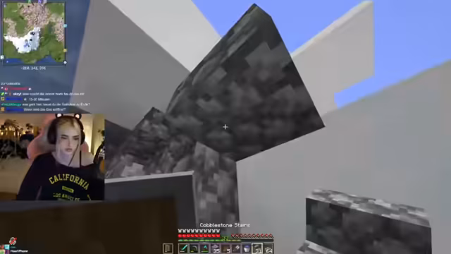 00:02:10Nach dem Öffnen von Minecraft diskutiert der Streamer mit dem Chat über den aktuellen Stand auf dem Server. Es geht um den Bau der Basis, wobei Unklarheiten über den Standort bestehen – einige erwähnen einen Umzug ins Dorf, während der Streamer seinen ausgebauten Berg-Position zeigt. Spieler wie Matze und Danny sind im Voice-Call, und es folgen Absprachen zur Ressourcenverteilung, etwa Holzbeschaffung und den Erhalt der 'Ancient City' als zentraler Spielort.
