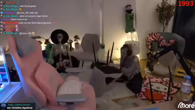 00:28:30 die Kommode im Hintergrund. Weil ich habe keinen Akkuschrauber. Ich muss schnorren bei jemandem. Es gibt nur einen pinken Stuhl von Razer. Nur den hier. Oh, ich danke, Chris. Es werden die Nashis. Oh mein Gott, nein. Es werden die nicht. Sollen wir dann jetzt schon rein in Minecraft? Wie viele Subgifts? Stühle aufbauen und Tisch umstellen. Wenn ich das nicht mache, 50?