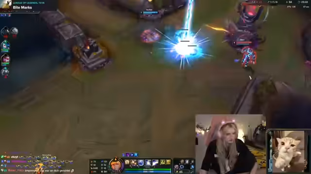 07:44:18Es wird sich über einen Mitspieler geärgert, der die Midlane als 'Partylane' ansieht und den Streamer absichtlich campt. Dies führt zu dem Wunsch, auf koreanischen Servern zu spielen, wo weniger Leute den Streamer erkennen und ihn nicht absichtlich campen. Es wird überlegt, was im Haus in Sims platziert werden soll, wobei ein Zen-Garten und eine tropische Obstschale in Betracht gezogen werden. Es wird der Wunsch geäußert, ein Familienhaus in Sims zu bauen. Es wird sich über den schlechten Xerath-Check und einen Alistar geärgert, der zu viele Kills hat. Es wird sich über das Spiel League of Legends generell aufgeregt und überlegt, ob man auf koreanischen Servern mehr Spaß hätte. Es wird ein Lied empfohlen, das man sich anhören und auf sich wirken lassen soll. Es wird überlegt, welches Haus in Sims gebaut werden soll, wobei das Haus voll auf Party ausgerichtet sein soll. Es wird sich über einen gebannten Lux und eine Katze gefreut, die cool ist. Es werden verschiedene Gegenstände für das Haus in Sims gezeigt, wie ein toter Frosch, ein Baby Dino und ein Axolotl. Es wird überlegt, ob man ein Haus mit Überdachung bauen soll. Es werden Cheats für Sims benötigt.