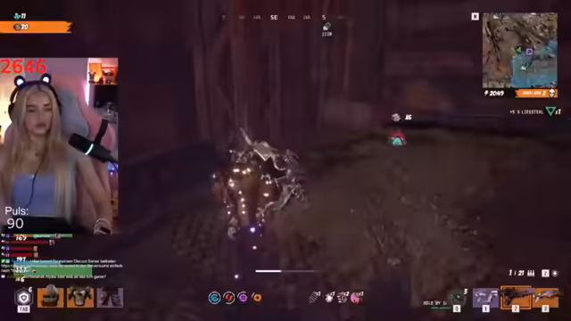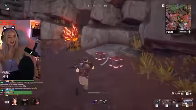 05:14:59Die Streamerin erreicht den Raum des Bossgegners 'Bray'. Sie ist aufgeregt und angespannt und plant, den Gegner mit einer Spritze auszuschalten, da sie nur noch einen einzigen Magnumschuss hat. Ihre Taktik besteht darin, den Kreisverkehr auszunutzen und ihm eine Spritze zu verabreichen. Sie ist sich unsicher, ob die Spritze oder der Magnumschuss effektiver ist und ändert ihren Plan aufgrund von Chat-Empfehlungen. Die ganze Zeit ist sie sich bewusst, dass die Gegner wieder aufstehen können, was ihre Angst verstärkt.