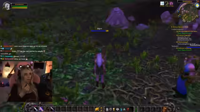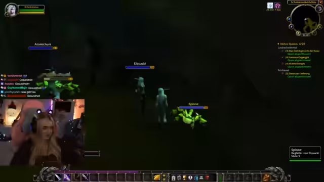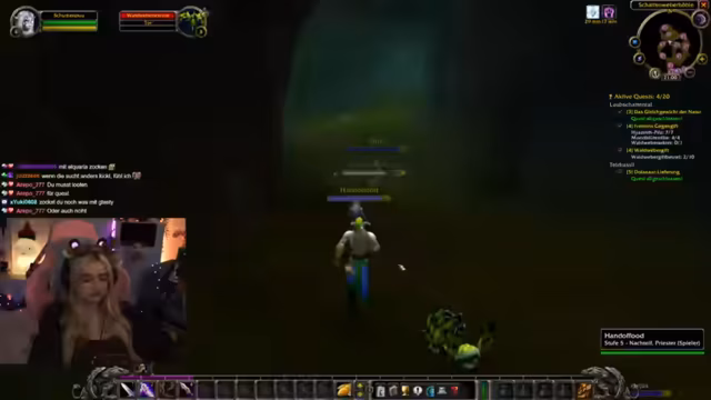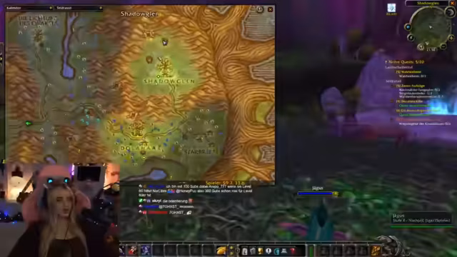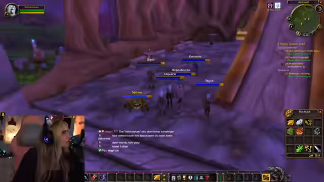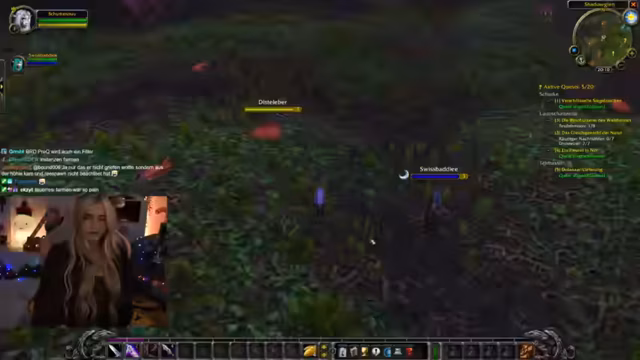 01:26:03Der Streamer lädt den Spieler 'Schwuppenpuh' (Isa) in eine Gruppe ein, um gemeinsam Quests wie das Töten von Distel-Ebern und Nachtsäblern zu erledigen. Dabei erklärt er die Anzeige von Gegnern auf der Karte, die Markierung von Zielobjekten und die Notwendigkeit, Gegner anzugreifen und nach dem Kampf zu looten. Er demonstriert die Zusammenarbeit, indem er die Positionen der Quest-Ziele auf der Karte identifiziert und koordiniert, wie beide Spieler effizient zusammenarbeiten, um Aufgaben in der Umgebung von Booty Bay zu bewältigen.