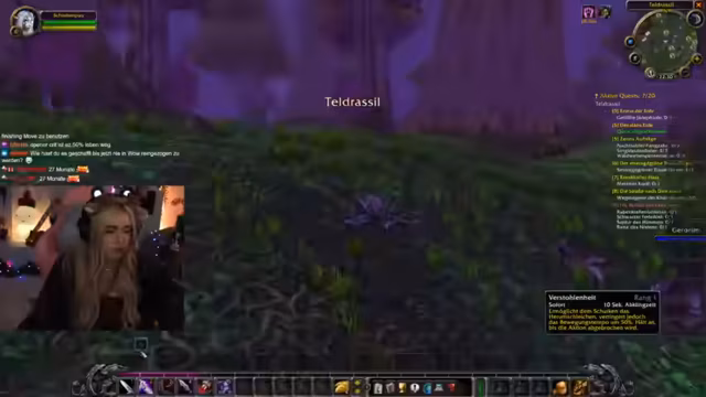 02:26:53Die Streamerin erhält eine Schritt-für-Schritt-Anleitung für das Spiel. Sie lernt Quests zu erfüllen, Buffs (Seelenstärke für Ausdauer, Rüstungsbonus) zu nutzen und Mobs zu identifizieren. Es werden Mechaniken erklärt, wie das Erkennen von Loot-Chancen über dem Kopf und das Interagieren mit Gegenständen am Boden. Die Bedeutung von Minimal-Karten-Symbolen für Questziele wird verdeutlicht.