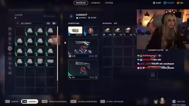 06:12:39Die Spielwirtschaft wird analysiert, mit Hinweisen auf Key-Käufe wie Malukenschlüssel und das Resetten des Trader-Levels von 75 auf Null für neue Fortschritte. Der Streamer drückt Schmerz über den Ressourcenverlust aus und betont, dass Blueprints und Loadouts essenziell sind, um wieder aufzusteigen. Er erwähnt Sub-Geschenke (Nashis) und plant, das neue Raider-Deck für blaue Punkte zu nutzen, um Skins freizuschalten, während er überlegt, eine Pause für das Enten-Management einzulegen.