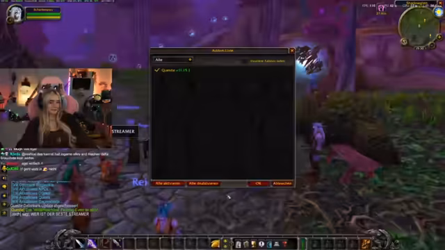 01:12:31Nach dem Einstieg in die Spielwelt stellt der Streamer fest, dass er noch keine Ahnung von den Grundlagen hat. Mit Hilfe des Chats und anderer Spieler wird das Addon 'Questy' installiert, um die Questverwaltung zu erleichtern. Gleichzeitig wird die Benennung des Charaktes und die grundsätzliche Bedienung des Spiels erklärt, um den Einstieg für den Streamer zu vereinfachen.