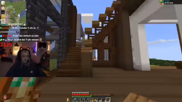 02:53:55Im späteren Streamabschnitt wird intensiv am Rathaus gebaut. Es geht um den Einsatz von gestripptem Holz, dunklem Eichenholz und Quarz für ein Wintergarten-Design. Die Gruppe optimiert Dachstrukturen, platzieren Bäume zur Landschaftsgestaltung und lösen Probleme mit Lavavorkommen. Der Fokus liegt auf ästhetischen Details wie Fenstern und Eingängen, wobei Zeitschranken und das Risiko einer bevorstehenden Zerstörung der Gebäude immer wieder erwähnt werden.