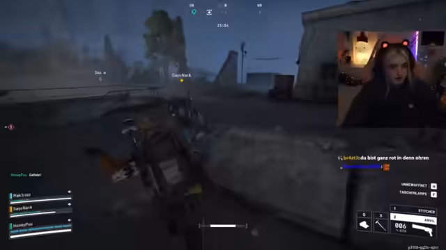 07:48:46Der Streamer diskutiert ein TikTok-Video mit 300 Spielstunden und bedauert, diese Information nicht früher gewusst zu haben. Es folgt eine aggressive Begegnung mit anderen Spielern, die mit wechselnden Taktiken agieren – anfangs friedlich, dann mit Beleidigungen wie 'Kleine Schlampe'. Parallel wird über Loot wie Glühbirnen und Sensoren gesprochen, wobei die Strategie besprochen wird, Gegner mit Staubsorganen anzugreifen. Die Runde wird als intensiv beschrieben, mit Fokus auf den Umgang mit toxischen Spielern.
