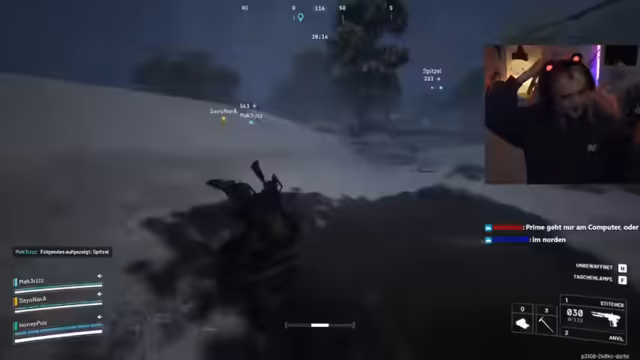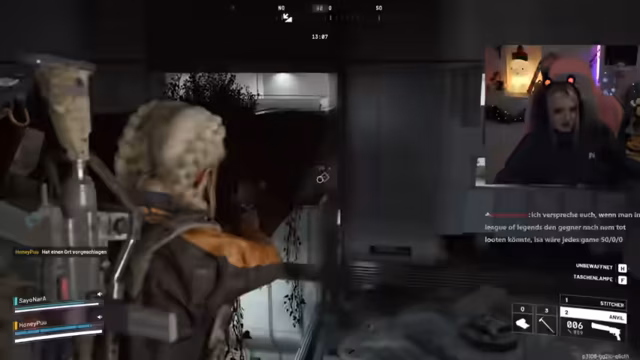 05:14:20Ein neuer Mitspieler (Sechs) schließt sich an, und sie starten eine kooperative Runde. Mike erklärt grundlegende Spielmechaniken, etwa die Nutzung von Energiezellen zur Heilung und das Crafting von Schutzschilden. Während des Spielens teilen sie persönliche Anekdoten: Mike erwähnt, er sei 30 Jahre alt und Vater einer sechs Monate alten Tochter. Es folgen lustige Geschichten über Familienmitglieder (Neffen, die den Nikolaus für tot erklären) und die Erfahrung, bei Events andere Streamer zu treffen. Die Runde endet mit intensiven Kämpfen und strategischem Loot-Management.
