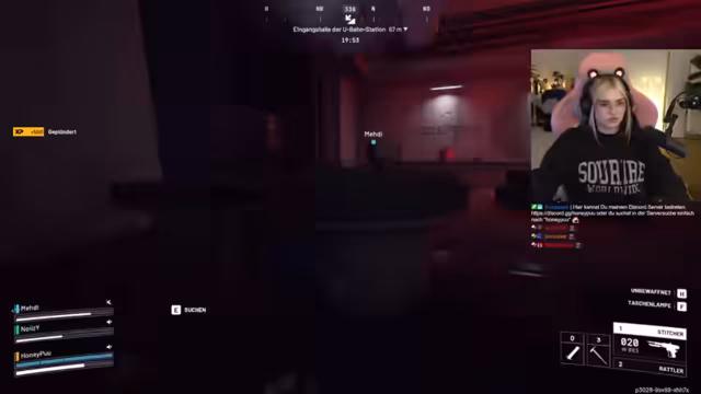 06:17:06Hier steht die Zusammenarbeit und die Kommunikation innerhalb des Teams im Vordergrund. Der Streamer koordiniert Aktionen, gibt Positionen durch und fordert Teammates auf, sich zu ihm zu bewegen. Es geht um das Finden von Teammitgliedern, das Teilen von Ressourcen wie Bandagen und Schilden sowie die damit verbundene Strategie, gemeinsam zu agieren und zu überleben.