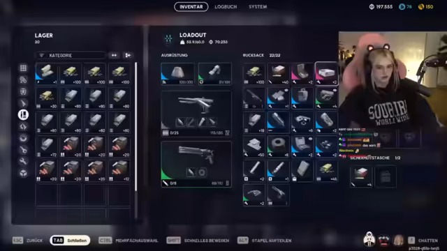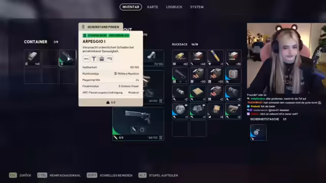 08:19:31Der Stream startet mit einer Runde ARC RAIDERS, nachdem 70.000 im Inventar erreicht wurden. Der Streamer bereitet sich auf den Einsatz vor, eine Ausrüstung mit blauem Schild und lila Rucksack wird ausgewählt und Schlüssel sowie gute Ausrüstung mitgenommen. Eine Diskussion über die Notwendigkeit der Nutzung von Safety Pockets für den Schutz von Schlüsseln wie dem Lukenschlüssel und Hedgekey findet statt, da diese im Gameplay essenziell sind. Da die Inventare voll sind, wird der Wert von nur nötigen Ausrüstungsgegenständen betont, um Platz für loot zu schaffen.