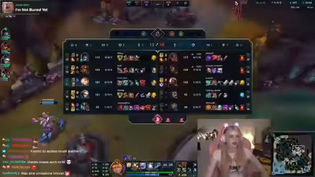 06:09:54Honeypuu äußert ihren Unmut darüber, am nächsten Morgen um 7 Uhr aufstehen zu müssen, da sie dummerweise ein frühes Meeting mit ihrem Management vereinbart hat. Sie spielt League of Legends und ist frustriert über ihre Mitspieler, insbesondere einen Viktor auf der Toplane, der nur splitpusht und scheinbar nutzlos ist. Sie erwähnt, dass sie dreimal hintereinander den gleichen Lux-Spieler im Spiel hatte und droht Konsequenzen an, falls dies erneut passiert. Sie diskutiert auch über die Schwierigkeit des Spiels und die Inkompetenz ihrer Teamkollegen, was zu Frustration führt. Sie überlegt, ob sie den Pass für das Spiel öffnen soll, entscheidet sich aber dagegen, da es ihr nicht viel bringt. Sie äußert auch ihre Abneigung gegen Ezreal als Champ und ihre Angst davor, aus Versehen nicht picken zu können.