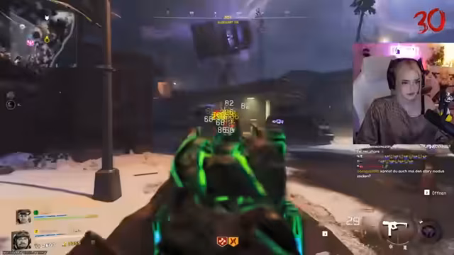01:09:02Während des Call of Duty-Spiels äußert die Streamerin Frustration über die Schwierigkeit, Gegner zu sehen und zu treffen, was sie auf die Notwendigkeit einer Brille zurückführt. Sie beschreibt, wie sie oft von Gegnern aus unerwarteten Positionen getötet wird und experimentiert mit einer Scharfschützenwaffe, nur um festzustellen, dass diese zu schnell zum Tod führt. Die Streamerin und ihr Co-Streamer, Schloruk, diskutieren über die verwirrende Map und die passive Spielweise der Gegner. Die Streamerin beklagt, dass sie in dieser Runde schlecht abschneidet, während Schloruk anmerkt, dass er die Map noch nie zuvor gespielt hat. Es wird auch über die Verwendung von 'Nashies' (Sub-Gifts) im Chat gesprochen, was auf eine engagierte Community hinweist, die sich aktiv am Stream beteiligt.