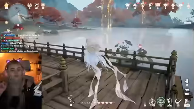 01:53:56Der Streamer setzt das Spielen fort und wird mit dem Fest der Wiedergeburt konfrontiert. Er trifft auf Charaktere aus der Vergangenheit, wie Fräulein Bay, und erfährt, dass alle, die verschwunden waren, zurückgekehrt sind. Die Geschichte wird durch die Interaktion mit NPCs vorangetrieben, die dem Streamer Dinge schenken, um ihn bei seiner Mission zu unterstützen. Der Streamer wirkt von der Tiefe der Geschichte und der Charaktere beeindruckt und versucht, alle Details aufzunehmen.