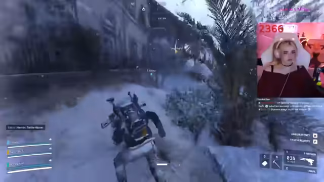 09:35:31Das Team stößt auf feindliche Spieler, einen davon eliminiert der Streamer mit einer Granate. Er bemerkt einen Mitspieler, der sich reviven lassen will und muss schnell handeln, um dies zu verhindern. Er wirft Defibrillatoren und Granaten in Richtung der Gegner, um sie zu verwirren und zu eliminieren. Es entsteht ein chaotisches Gefecht, bei dem das Team unter Druck gerät.