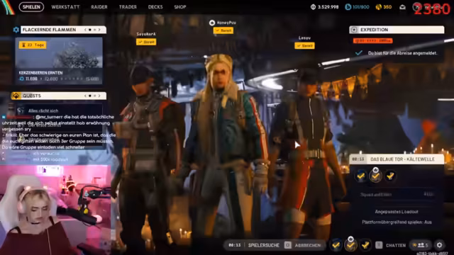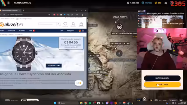 00:00:13Der Stream startet mit einem lockeren Austausch im Chat. Der Fokus liegt klar auf dem Hauptziel: dem Sammeln von 1,8 Millionen In-Game-Währung innerhalb der verbleibenden 14 Stunden, um das Event-Ziel von 5 Millionen zu erreichen. Der Streamer betont die Dringlichkeit, erwähnt persönliche Items wie einen Adventskalender und die Schwierigkeit, in Solo-Runden freundlich zu spielen, da die Konkurrenz sehr aggressiv ist.
