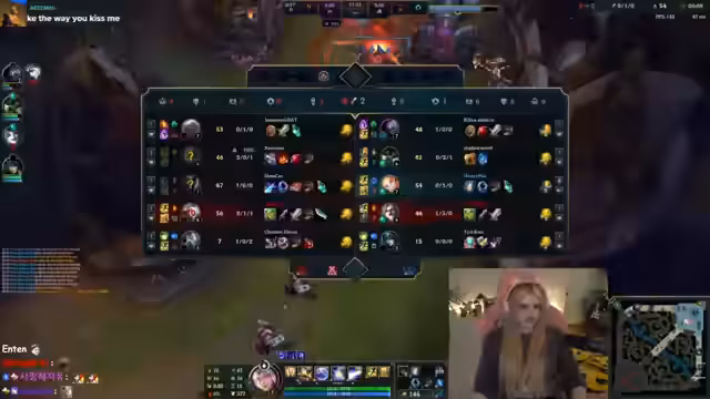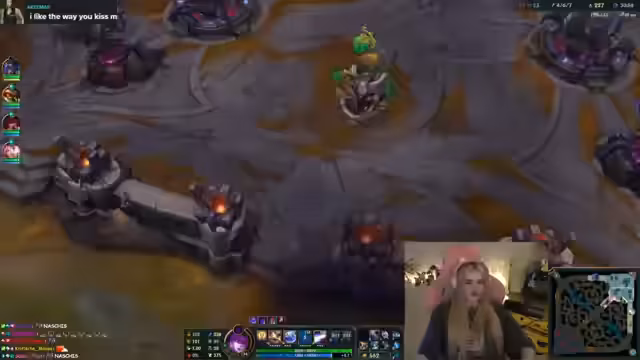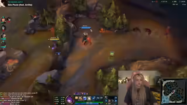 05:20:30Die Streamerin analysiert während des League-of-Legends-Spiels intensiv ihre Leistung und die des Gegnerteams. Sie bespricht Champions-Kombinationen, Map-Positionierung und die Schwierigkeiten, gegen bestimmte Gegner wie Kassadin und Nafiri zu bestehen. Dabei zeigt sie auch Frustration über ihre eigenen Fehler und ihre Suche nach besseren Strategien, möglicherweise durch Coaching.