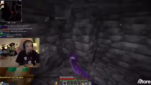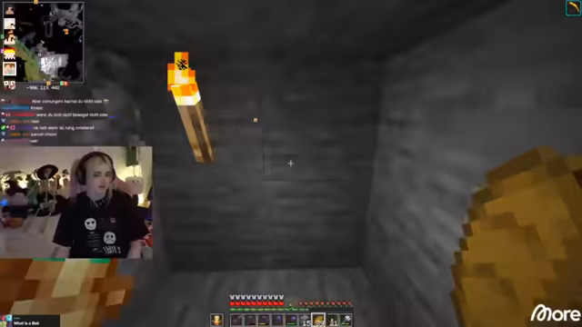 10:56:36Die Streamer erkunden eine Trial Chamber und sind überrascht von den visuellen Effekten eines Animationsmods, der die Mobs, insbesondere Skelette und Villager, auf eine „witzige“ und „ekelhafte“ Weise darstellt, ähnlich den Trailern von Minecraft-Erweiterungspaketen. Die Spinnen werden als besonders widerlich beschrieben. Trotz der dunklen Umgebung, die durch fehlende Helligkeitsmods noch verstärkt wird, fühlen sich die Streamer in der Dunkelheit wohl. Sie sammeln Schlüssel und öffnen Lootboxen, sind aber oft enttäuscht vom Inhalt, der hauptsächlich aus Eisenblöcken besteht. Die Trial Chamber erweist sich als chaotisch und voller Slimes und Zombies, die durch die Gegend geschleudert werden, was für viel Action sorgt. Die Streamer versuchen, sich in den verwinkelten Gängen zurechtzufinden und weitere Lootboxen zu entdecken, wobei die Orientierung oft verloren geht.