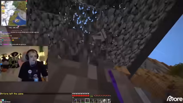 12:12:41Es wird von einem Streit mit Hugo berichtet, der die Person wiederholt töten wollte, nachdem sie ihn getötet hatte. Da es sich um Hugos Zweitaccount handelte, wurde der Konflikt nicht allzu ernst genommen. Später verbündete sich Hugo mit einem anderen Spieler namens Platinum, um die Person gemeinsam zu töten und ihr Fallen zu stellen, bis ihr 'Ding gepoppt' ist. Um den Verlust von Items zu vermeiden, wurde 'Combat Logging' angewendet, was jedoch zu Bedenken bezüglich möglicher Server-Bans führt, da andere Spieler wie Noreax, Hugo, Spark und Basti bereits Probleme mit dem Einloggen hatten. Die Person ist besorgt, dass ihr PC nicht mehr vom Server herunterfahren sollte, um einen Ban zu vermeiden. Es wird auch über die Langsamkeit des 'Happy Gas' als Fortbewegungsmittel gespottet und die Notwendigkeit von Nether-Koordinaten für Portale besprochen.