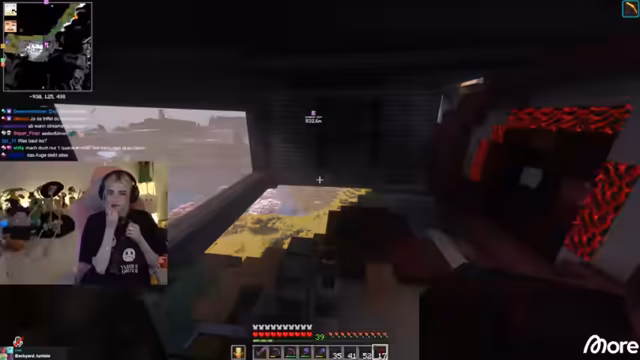 10:39:10Es wird über das Design und den Bau des Hauses diskutiert, insbesondere über die Gestaltung eines riesigen Auges, das später mit Redstone und Lichteffekten versehen werden soll, um eine leuchtende Pupille zu simulieren. Dahinter ist ein Lagerraum geplant. Die Streamer sind unzufrieden mit dem aktuellen Boden und überlegen, ob dunkle, musterlose Blöcke besser wären, um das Auge hervorzuheben. Es wird auch die Idee geäußert, das Muster, das ursprünglich für den Boden gedacht war, stattdessen im Schlafzimmer zu verwenden. Die Platzierung des Auges wird als fehlerhaft erkannt, da es zu weit hinten liegt und nach vorne verschoben werden muss, um von außen besser sichtbar zu sein. Die Wahl des Materials für den Rand des Auges wird zwischen Netherrack, roter Wolle oder Concrete abgewogen, wobei Netherrack als bevorzugte Option erscheint, um einen leuchtenden Effekt zu erzielen und das Auge plastischer wirken zu lassen.