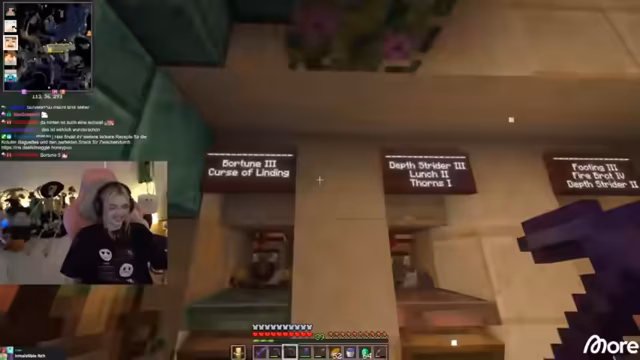 09:28:37Die Gruppe plant, eine Trial Chamber zu besuchen, obwohl bereits zwei an diesem Tag abgeschlossen wurden. Es wird diskutiert, ob man eine dritte Trial Chamber angehen soll, insbesondere da neue Bücher erhalten wurden, die für den 'dummen Hammer' benötigt werden. Die Streamer tauschen sich über die verschiedenen Verzauberungen aus, die für den Hammer relevant sind, wie Windburst, Density und Breach, und deren Effekte. Die Vorbereitungen für die Trial Chamber beinhalten das Reparieren von Waffen und Rüstungen sowie das Sammeln von Emeralds durch Handel mit Villagern. Es wird erwähnt, dass eine effiziente Eisenfarm und eine XP-Farm zur Verfügung stehen, um die notwendigen Ressourcen zu beschaffen. Die Gruppe beschließt, sich um Viertel vor einer bestimmten Zeit zu treffen, um gemeinsam zur Trial Chamber aufzubrechen. Während der Vorbereitungen wird auch über die Gestaltung von Bases und mögliche Bauprojekte gesprochen, wobei humorvolle Vorschläge wie eine Statue oder ein Kartoffelfeld für einen anderen Spieler gemacht werden.