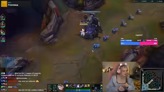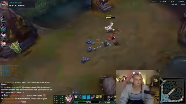 03:26:37Zu Beginn des Streams beschäftigt sich die Streamerin mit den Herausforderungen im aktuellen League of Legends-Spiel. Sie fühlt sich ohne Protection anfällig und macht sich Sorgen über den Schaden, den Ezreal verursacht. Ihr Team scheint koordiniert zu sein, doch ein Fehlmanöver führt zu einem schlechten Ausgang. Die Partei wird als unglücklich beschrieben und sie stellt fest, dass ihre Teammitglieder auf den Lanes herumlaufen, was zu einem Minus von 27 führt. Trotzdem wird ein kreatives Bild im Mainchat erwähnt, das sehr gut gelungen ist.