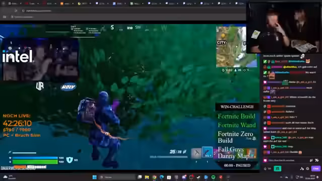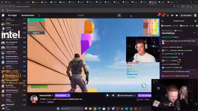 05:51:21Nach einer spannenden Runde in Fortnite steht ein dramatisches Finale an. Uwe hat eine Runde gewonnen und ist im finalen Spiel. Gleichzeitig kämpft Noah, der seit Stunden an der Wand festhängt, um einen letzten entscheidenden Sprung. Die Spannung steigt, als Uwe im Finale den Sieg knapp verliert und Noah den Aufstieg an der Wall wagt, um das Turnier für sich zu entscheiden.