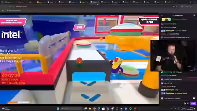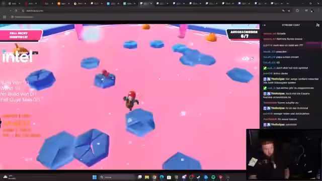 01:29:32Es wird das offizielle Turnierformat erklärt. Für die Gamescom-LAN konnten Tickets und Plätze gewonnen werden, bei denen man eigenen PC mitbringen oder gestellt bekommen konnte. Die nächste Challenge sollte die 'Danny Vollgasmap' sein, eine als sehr schwierig geltende Map. Allerdings wird der Plan kurzfristig geändert. Aufgrund eines neu erschienenen Patches in Fall Guys ist die Danny-Map nicht mehr spielbar, da ein entscheidender Sprung nicht mehr funktioniert. Als Ersatz wird die 'Reapers-Map' angesetzt, die als etwas einfacher eingestuft wird.