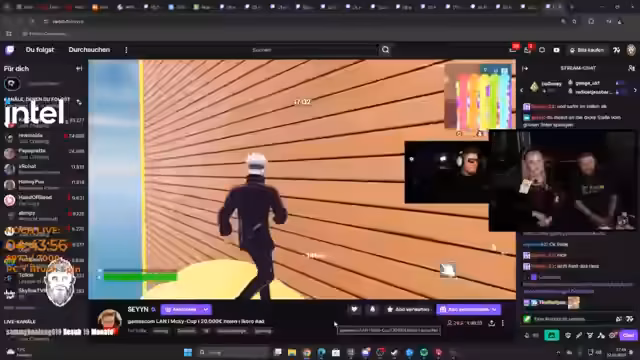 00:34:46Nach der finalen Vorbereitung beginnt das erste Spiel, Fortnite mit Bauen. Honeypuu und sein Co-Moderator Chet beobachten die Teilnehmer über diverse Bildschirme und Streams, um deren Fortschritt zu verfolgen. Dabei werden prominente Teilnehmer wie Noah Z. und Uwe ins Visier genommen. Währenddessen gibt es anfangs technische Herausforderungen, insbesondere bei der Übertragung von Noah Z.s Stream, was jedoch behoben wird. Die Teilnehmer kämpfen um die Plätze in der Lobby, und es werden erste Erfolge und Misserfolge sichtbar. Die erste Runde endet mit einigen Teilnehmern, die ihre Siegplatzierungen sichern und direkt zur nächsten Challenge, der Fortnite-Wand, weiterziehen.