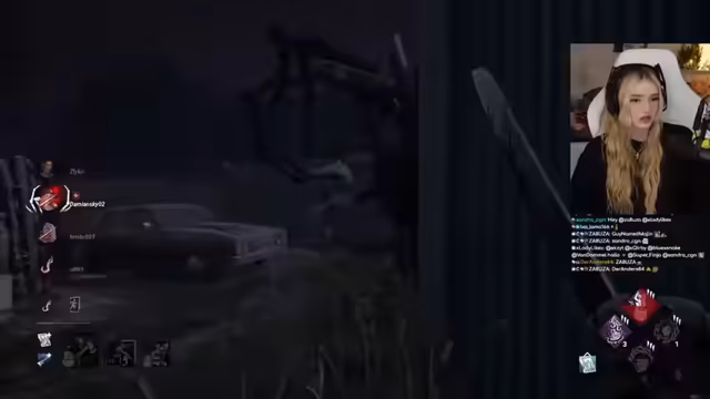 04:04:48Der Stream ist von ständiger Interaktion mit dem Chat geprägt. Die Streamerin greift Anregungen und Kommentare auf, wie zum Beispiel die Bemerkung, dass alle Taschenlampenspieler 'ekelhaft' sind. Sie beschreibt stressige Spielsituationen, in denen sie und ihre Teammates von dem Killer gejagt werden. Es kommt zu verbalen Duellen mit dem Killer, bei der sie sich über dessen Aussehen und Fähigkeiten lustig macht, während sie gleichzeitig selbst unter dem Druck des Spiels leidet und um Hilfe schreit.