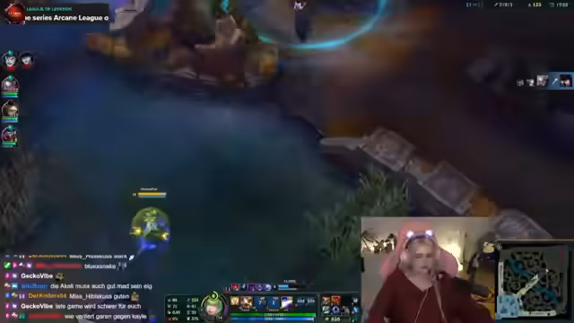 02:33:37Die Streamerin erklärt, warum sie ein bestimmtes Headset benutzt: Ihr anderes Headset hat Verbindungsprobleme, während das aktuelle mit Kabel stabil ist. Sie äußert die Befürchtung, im Spiel gegen Jinx und Mundo antreten zu müssen. Sie genießt die Zeit beim Spielen und erinnert sich daran, ihr Handy aufzuladen. Es folgen Kommentare zum Spielgeschehen, darunter eine Einschätzung der Bot-Lane und die Dominanz in der Mid-Lane. Die Streamerin äußert ihre Begeisterung für die aktuelle Musikauswahl und erwähnt, dass sie von einem Lied Gänsehaut bekommt. Sie betont, die Lux im Spiel zu fürchten und zu respektieren, und beschreibt einen Songanfang als Blade-Vibes. Sie kommentiert weiterhin das Spielgeschehen, einschließlich eines missglückten Versuchs, Zyra zu eliminieren, und kritisiert falsche Entscheidungen ihrer Mitspieler. Die Streamerin reflektiert über die Teamdynamik und die Notwendigkeit, sich auf Jinx zu konzentrieren. Abschließend äußert sie sich zu den Vorhersagen basierend auf der Cloud Soul und bedauert den Einfluss der Xayah auf das Spiel.