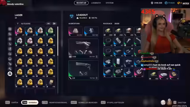 02:13:46Die Spielrunde dreht sich um das Sammeln von wertvollem Loot. Nachdem eine feindliche Bobcat zerstört wurde, ist der Stash des Streamers voll und der Fokus verlagert sich auf eine spezielle Mission: die Jagd auf Enten im Event. Dies soll eine frische Runde ohne den Frust des Matchmakings bringen, das zu aggressive Gegner verursacht. Das Sammeln der Enten steht im Vordergrund, während das Matchmaking als frustrierend und unfair kritisiert wird.