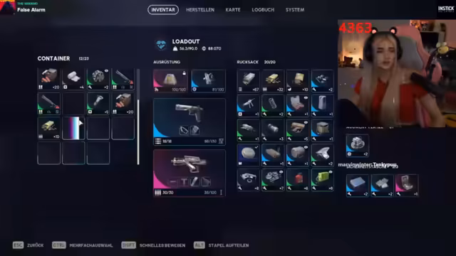 07:09:57Nach dem schweren Kampf versucht das Team, sich aus der Gefahrenzone zurückzuziehen. Der Streamer stellt sicher, dass er der toten Gegnerin ihre Waffen und Ausrüstung abnimmt und repariert, um sie ihr später zurückzugeben. Der Fokus liegt darauf, den Loot sicher zu transferieren und den Weg zum Ausgang zu finden, wobei das Gewicht des Inventars eine Herausforderung darstellt.