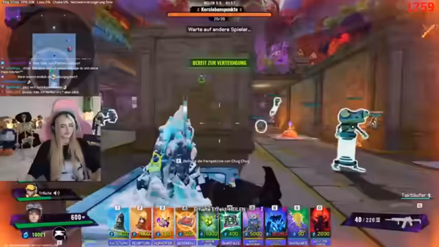 01:32:31Die Spieler starten die erste Welle im Tower Defense Modus von FragPunk. Sie haben jeweils 4000 Geld und müssen einen Kristall verteidigen, der von lila Portalen aus angegriffen wird. Die Streamerin platziert Geschütztürme in den Ecken, während Dalukat erklärt, dass man Roadblocks nutzen kann, um Gegner zu zwingen, längere Wege über Spikes zu nehmen, was zusätzlichen Schaden verursacht. Es wird diskutiert, dass Schießen nur ein Bonus ist und die Fallen die Hauptverteidigung darstellen sollten. Die Streamerin entdeckt, dass sie mit ihrer Waffe (einem Kukri) viel Schaden anrichten kann. Sie stellt fest, dass manche Tower an Wänden platziert werden können und Sägeblätter ausfahren. Die Spieler lernen, dass das Spiel Crossplay unterstützt und auf PC, PS5 und Xbox verfügbar ist. Sie betonen, dass der PvE-Modus eine große Neuerung darstellt und Twitch-Drops bietet. Die Gegner werden mit jeder Welle stärker, und es gibt verschiedene Schadenstypen wie Feuer- und Eisschaden, sowie Gegner mit Rüstungen oder Schwachstellen.