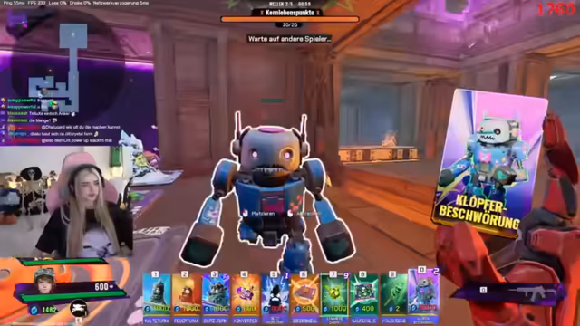 01:47:22Die Schwierigkeit des Spiels nimmt rapide zu. Die Streamerin und ihr Team kämpfen gegen verschiedene Gegnertypen, darunter schnelle Ritter auf Raketen, unsichtbare Gegner und Roboter, die gezielt Türme angreifen. Sie stellen fest, dass bestimmte Gegner, wie kleine Typen mit Lasern, extrem viel Schaden verursachen und sogar one-hitten können. Die Streamerin ist überrascht von der schnellen Zunahme des Schwierigkeitsgrades und muss ihre Strategie anpassen. Sie entdeckt, dass sie durch das Töten von Gegnern mit dem Converter Leben zurückgewinnen kann. Eine Taktik, die sich als effektiv erweist, ist das vollständige Blockieren eines Weges mit Roadblocks, wodurch die Gegner feststecken und manuell eliminiert werden müssen. Dies ermöglicht es dem Team, sich auf eine Seite zu konzentrieren und gleichzeitig Leben zu regenerieren. Nach dem erfolgreichen Abschluss einer Welle öffnen die Spieler Kartenpakete, um neue Shard-Karten für ihre Decks zu erhalten und ihre Strategien weiter zu verfeinern.