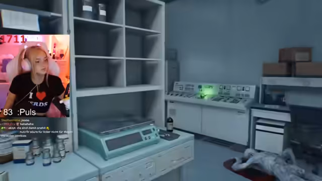 00:01:20Zu Beginn des Streams geht es hauptsächlich um das Verändern der Hintergrunds und eine spontane Aufräumungsaktion im Streamerraum. Die Streamerin verschiebt Einrichtungsgegenstände wie eine Kommode und eine Lichterkette, weil ihre Mutter Platz für Ablagerungen benötigt. Sie erwähnt zudem das Problem mit der fehlerhaften Schriftart im Twitch Chat und kündigt an, dass der Stream ausschließlich Resident Evil gewidmet ist, da es am Vortag nicht dazu gekommen war.