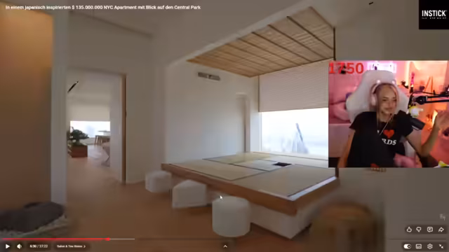 02:15:51Der Streamer schaut sich ein luxuriöses Apartment im 79. Stock des 432 Park Avenue an. Er stellt die Frage, wer solch eine Wohnung überhaupt kaufen kann und äußert eine gewisse Angst davor. Er kritisiert die extreme Höhe des Stocks, da man von zu oben wie im Flugzeug schaue und nicht mehr vom städtischen Leben teilhabe. Die Aussicht sei zu hoch und werde eher zu Nebel und Wolken. Die Wohnhöhe wird in drei Drittel eingeteilt und er preferiert das obere Drittel oder das mittlere Drittel ganz oben für eine gute Balance aus Aussicht und Lebensnähe.