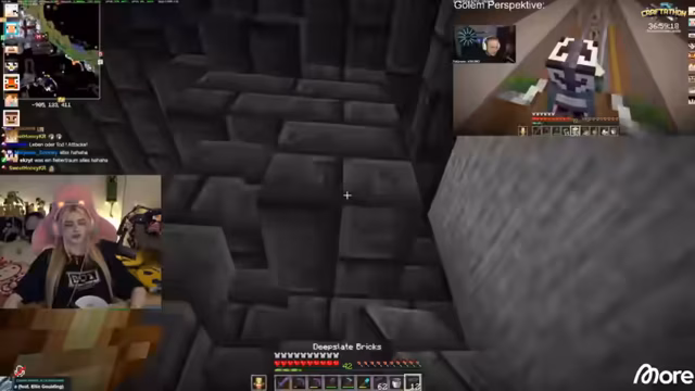 03:34:40Die Planung der neuen Base in Minecraft ist geprägt von detaillierten Beschreibungen des gewünschten Stils, der an Death Note und League of Legends angelehnt ist. Es werden Pläne für ein Rammstein-Konzert mit einem Engel als Sänger geschmiedet und die Gestaltung eines VIP-Bereichs auf dem Gelände diskutiert. Der Streamer koordiniert mit seinen Zuschauern, die ihm bei der Beschaffung von Materialien wie Tridents helfen sollen.