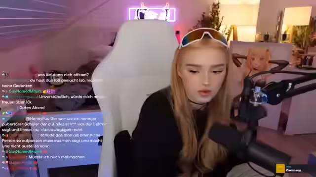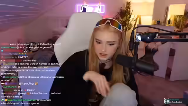 00:08:57Honeypuu streamt aus ihrem alten Kinderzimmer bei ihren Eltern, was für sie eine nostalgische Erfahrung ist. Sie zeigt ein cooles Neonschild, das sie gerne mit nach Madeira oder Korea nehmen würde, was aber aufgrund der Größe schwierig ist. Sie erzählt von ihrer Zeit auf der Gamescom LAN und erwähnt, dass sie Asyl bei ihren Eltern gesucht hat. Sie spricht über ihre neue Haarfarbe, die sie als Strawberry Blond bezeichnet, und dass sie ihr Setup ein wenig verbessert hat. Sie erwähnt, dass sie von ihrem Management Pakete erhalten hat, die an ihre Eltern geschickt wurden, da sie aufgrund eines Hacking-Vorfalls keine Pakete mehr annimmt. Sie zeigt ein Geschenk von Reiza, ein E-Mode, das sie mit nach Korea nehmen möchte, um es in ihr Regal zu stellen.