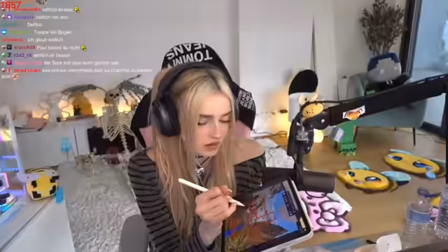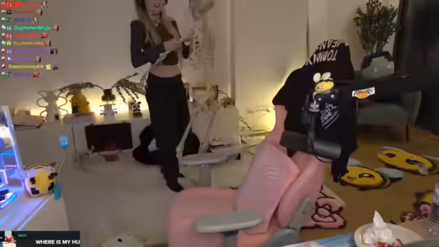 09:21:24Die Streamerin präsentiert eine Creeper-Piñata, die sie aus Amerika mitgebracht hat und die mit Süßigkeiten befüllt werden soll. Sie plant, die Piñata später aufzuhängen und zu zerschlagen. Des Weiteren teilt sie ihre Pläne zur Umgestaltung ihres Setups mit. Sie möchte ihr Setup in eine andere Ecke des Raumes verlegen, um mehr vom Raum zu zeigen. Außerdem hat sie einen runden Esstisch gekauft, den sie für Kochstreams nutzen möchte, um das Essen direkt vor der Kamera zubereiten zu können, anstatt sich wegdrehen zu müssen. Die Streamerin fragt auch nach der genauen Startzeit für ein bevorstehendes Spiel von Hugo, da es zu Verwechslungen mit Zeitzonen kommen könnte. Sie erzählt von den Schwierigkeiten, die Creeper-Piñata im Flugzeug zu transportieren, da sie nicht in den Koffer passte und die Leute sie misstrauisch ansahen, als würde sie eine Bombe transportieren. Sie zeigt, wie sie die Piñata tragen musste, um sie mitzunehmen.