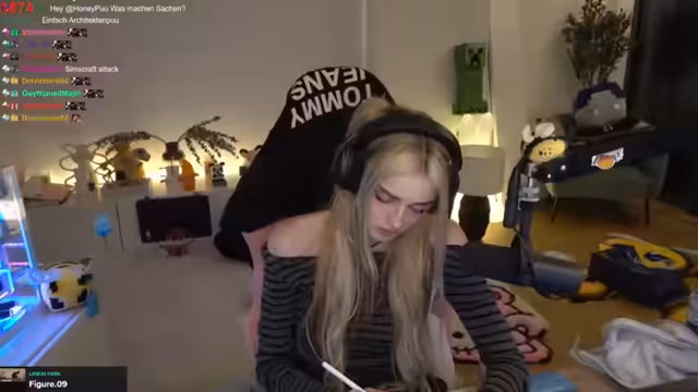 10:55:18Die Streamerin ist bereits seit 10,5 Stunden live, während andere Streamer, die von Anfang an dabei waren, sogar 11 Stunden erreicht haben. Sie bemerkt, dass sie langsam müde wird und der „Downfall“ beginnt, also der Punkt, an dem die Energie nachlässt. Trotz der Müdigkeit setzt sie ihre Bauarbeiten fort und plant, ihr Haus zu erweitern. Ein kurzer Schreckmoment entsteht, als ein Blitz in der Nähe einschlägt, was die Hoffnung auf seltene Skelettpferde weckt, die jedoch nicht gefunden werden. Die Streamerin teilt ihre Begeisterung für Porridge mit Schokoproteinpulver und Himbeeren und überlegt, wie sie den Eingang ihres Hauses gestalten soll, wobei sie sich eine automatisch öffnende Tür vorstellt, die später mit Redstone-Technik umgesetzt werden soll.