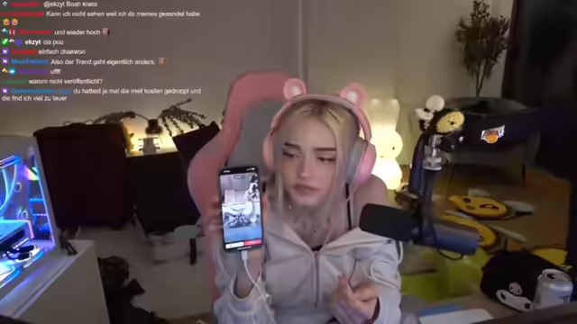 00:09:46Die Streamerin spricht über ihre kürzlichen Einkäufe, darunter Kuromi-Sitze für ihr Korea-Setup, die sie später im Stream auspacken möchte. Sie erwähnt auch, dass sie am 8. Oktober in Berlin sein wird und sich darauf freut, jemanden zu treffen. Außerdem teilt sie aufgeregt mit, dass sie Ende Oktober nach Japan reisen wird und ihr Bruder sie begleiten wird. Sie lobt die Kamera des neuen iPhone 17, das sie speziell für Vlogs in Japan gekauft hat. Sie betont die Vorteile des neuen iPhone 17, insbesondere die Möglichkeit, sowohl im Hoch- als auch im Querformat ohne Qualitätsverlust zu vloggen. Die Streamerin äußert sich zu der Debatte zwischen iPhones und Samsung-Handys und betont, dass jeder das Handy wählen sollte, das ihm gefällt. Sie erwähnt, dass sie sich das neue iPhone hauptsächlich wegen ihrer Reise geholt hat, da ihr aktuelles Handy Probleme macht.