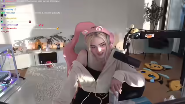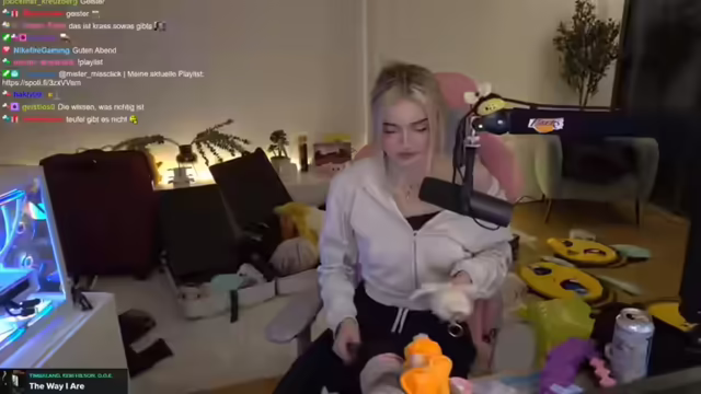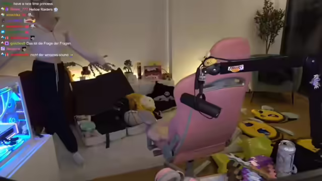 01:57:28Die Streamerin zeigt ihre Skoliose und erklärt, dass ein Korsett in ihrem Alter nicht mehr hilft, sondern nur asynchrones Muskeltraining. Anschließend wird ein Chromi-Stuhl ausgepackt, der online bestellt wurde. Die Erwartungen an den Stuhl werden jedoch enttäuscht, da er kleiner und weniger flauschig ist als auf den Produktbildern. Trotzdem wird er vorerst als Bett für den Hund verwendet. Es wird über die Vorbereitungen für Craft Attack gesprochen, inklusive eines Zauberbogens mit Giftpfeilen für One-vs-One-Fights. Zudem wird ein Honigbärenanzug als Cosplay-Option vorgestellt. Die Streamerin zeigt sich enttäuscht über den Kauf des Stuhls, da dieser auf den Bildern größer wirkte und überlegt, diesen in Deutschland weiterzuverkaufen oder als Sitzplatz für sich selbst zu nutzen. Es wird auch überlegt, den PC, der häufig abstürzt, zu verlosen, anstatt ihn zu entsorgen.
